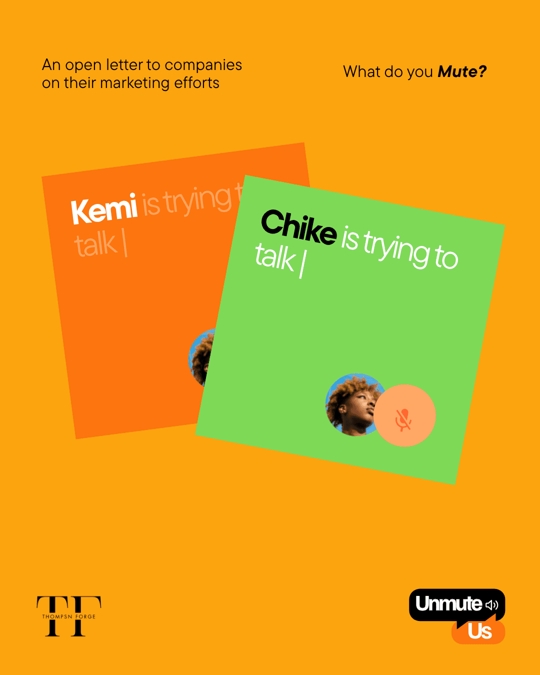 Unmute Us is an in-house campaign by Thompsn Forge created to highlight the often-overlooked impact of bureaucracy and administrative bottlenecks on the creative process. Using meme culture, bold visual language, and witty short-form vertical content, the campaign featured Founder & CEO Adekemi Thompsn alongside Head of Operations & Strategy Tomisin Akinwunmi.